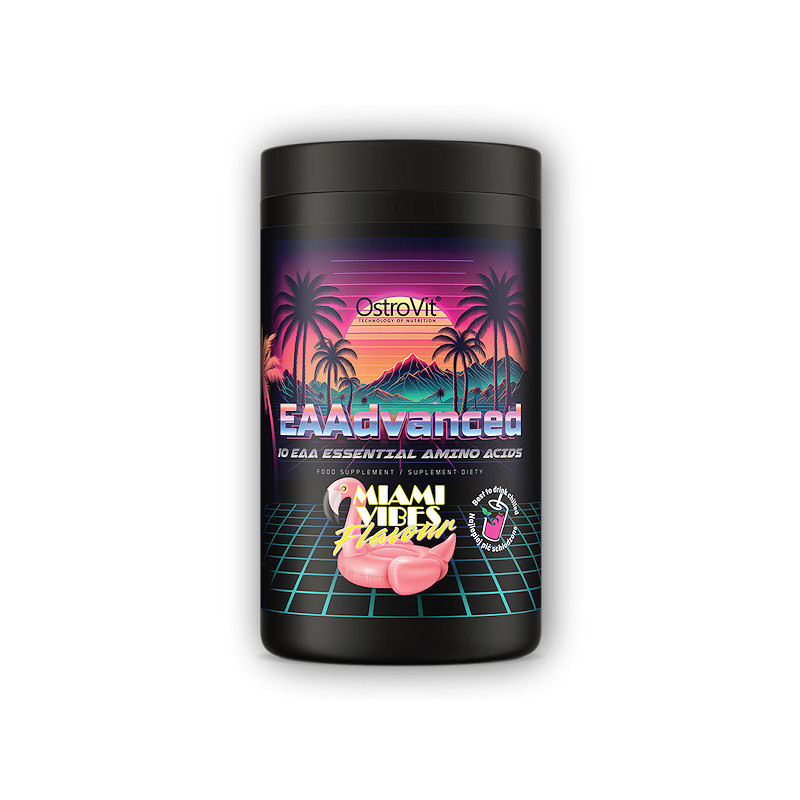 Az OstroVit EAAdvanced with Miami Vibes egy kiváló minőségű porított étrend-kiegészítő. Ez egy összetett tápanyag, amely esszenciális aminosavakat (EAA), elágazó láncú aminosavakat (BCAA) és értékes elektrolitokat tartalmaz. Ez egy olyan termék, amelyet fizikailag aktív emberek számára hoztak létre, akiknek fokozott igényei vannak a termékben található tápanyagokra.