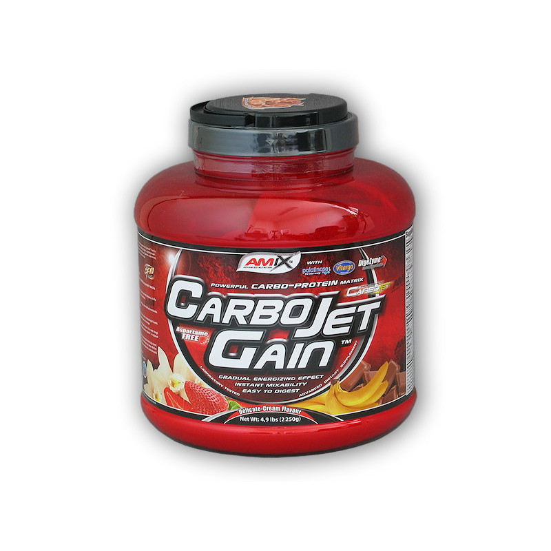 A CarboJet™ Gain egy speciális szénhidrát-fehérje por koncentrátum. Kiváló minőségű Amix™ Protein Blend fehérjéket és exkluzív Amix™ CarboJet™ Matrix szénhidrát komplexet tartalmaz, beleértve a nagy molekulatömegű Vitargo® keményítőt és a fokozatosan felszívódó Palatinosis izomaltulózt®. A benne lévő fehérje hozzájárul az izomtömeg növekedéséhez és fenntartásához.