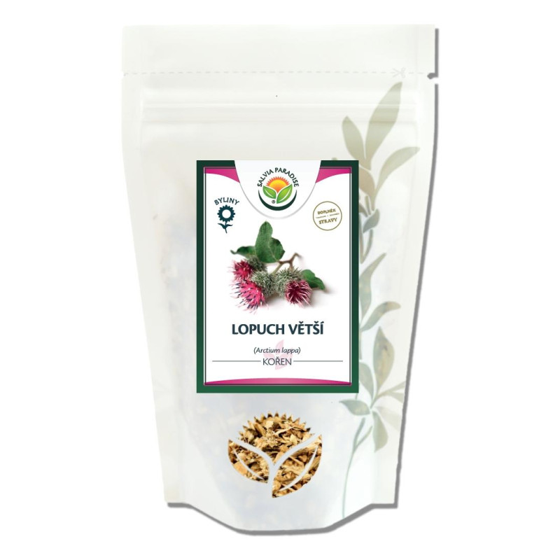 A bojtak, nagyobb szélesség. Az Arctium lappa egy magas biennále, amely akár 2,7 méter magasra is nő. A gyűjtés tárgya a gyökér, amely öreg alakú, szürkebarna, belül fehér, és néha eléri a 80 cm mélységet. A levelek nagyok, szív alakúak, hosszú levélszerejel, alatta fehér szőrök borítják. A virágok feltűnő lila-vörös színűek, néha rózsaszínek, 3-4 cm átmérőjű fürtökbe rendezve. A növény júliustól szeptemberig virágzik.