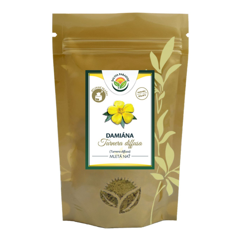 Damian – Turnera diffusa – finomra darált por formájában. Ennek az előre az előnye, hogy nagyon könnyű az előkészítés és a gyors használat.